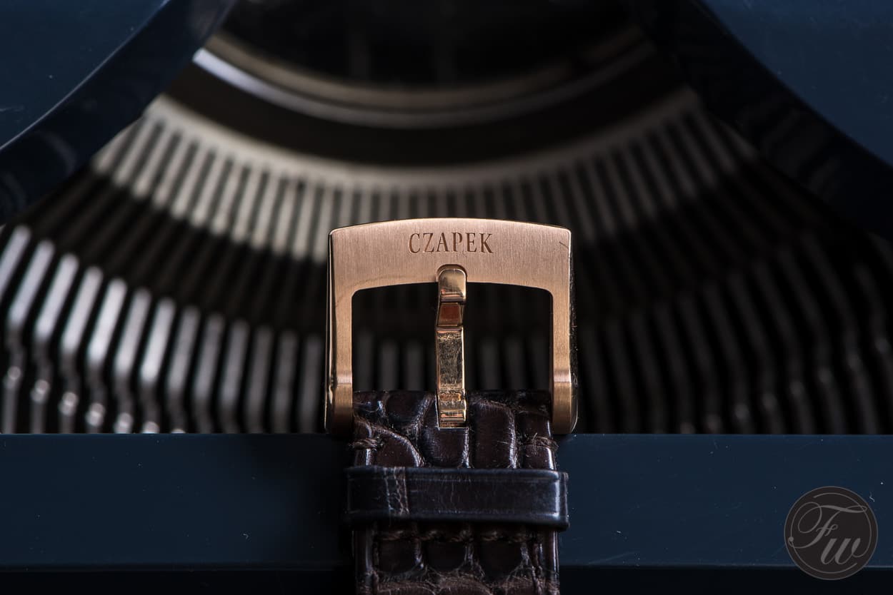 Czapek ermöglicht es Ihnen, kleine Tweaks auf Ihre Uhr zu tun. Bei der Bestellung eines Czapek Quai des Bergues, werden Sie gebeten, einige Entscheidungen zu treffen. Sie können die Sprache der Gangreserveanzeige (Englisch oder Französisch) oder einfach ein Wort ohne Worte auswählen. Sie können auch nach einer benutzerdefinierten Sprache fragen.